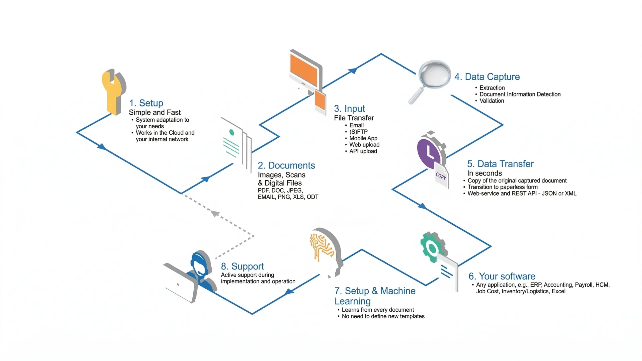 The AI agent reads, sorts, and processes incoming documents 24/7. Without errors and without rest.